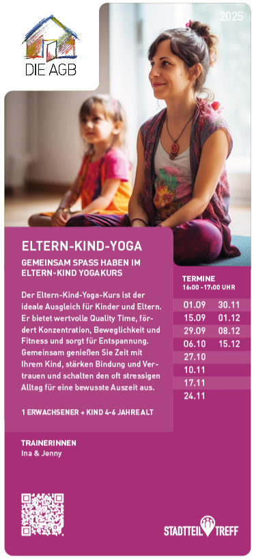 Der Eltern Kind Yoga Kurs bietet nicht nur Quality Time, sondern fördert die Konzentration, macht beweglich und fit und sorgt für Entspannung. Genießen Sie gemeinsam Zeit mit ihrem Kind und stärken die ihre Bindung und das Vertrauen, der gemeinsame, oft stressige Alltag kann hier einmal komplett ausgeschaltet werden und sich eine bewusste Auszeit gegönnt werden.